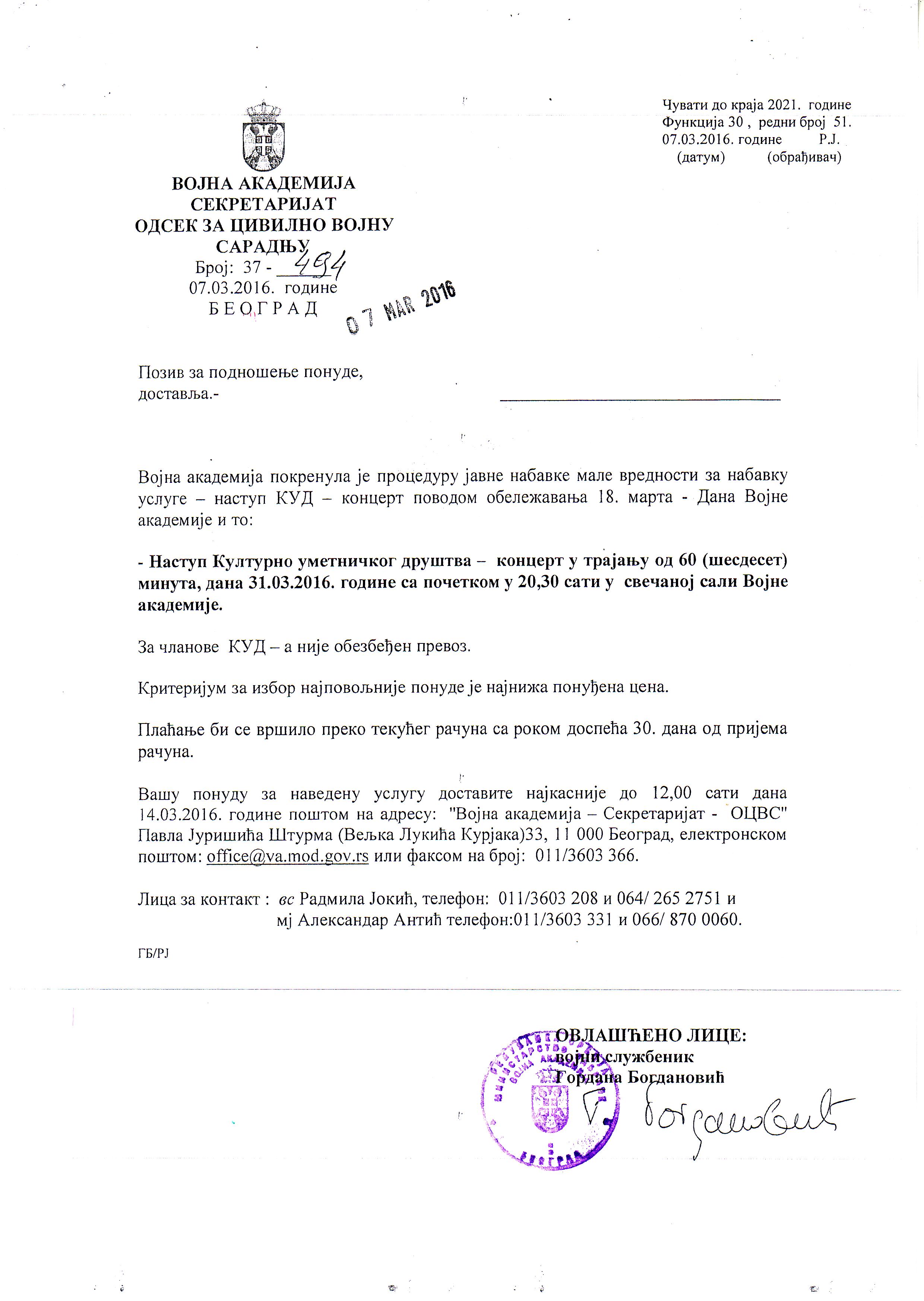 Радмила Јокић тел. 011/3603-208 факс: 011/3603-336
